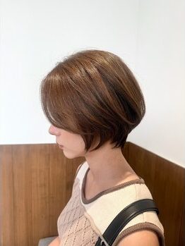 顔まわりや表面にリバースが入ることで、全体に動きが生まれ、重くなりやすいショートボブに軽さがプラスされます。特にサイドの毛をリバースにすると、小顔効果も◎。