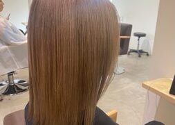 こんにちは!今回は透明感たっぷりのミルクティーブラウンにしました^^ ツヤ感と柔らかさのある仕上がりで、光に当たるとほんのり透けるカラーです!巻いたときに動きが出るように仕上げているので、ふんわりした雰囲気が好きな方におすすめです